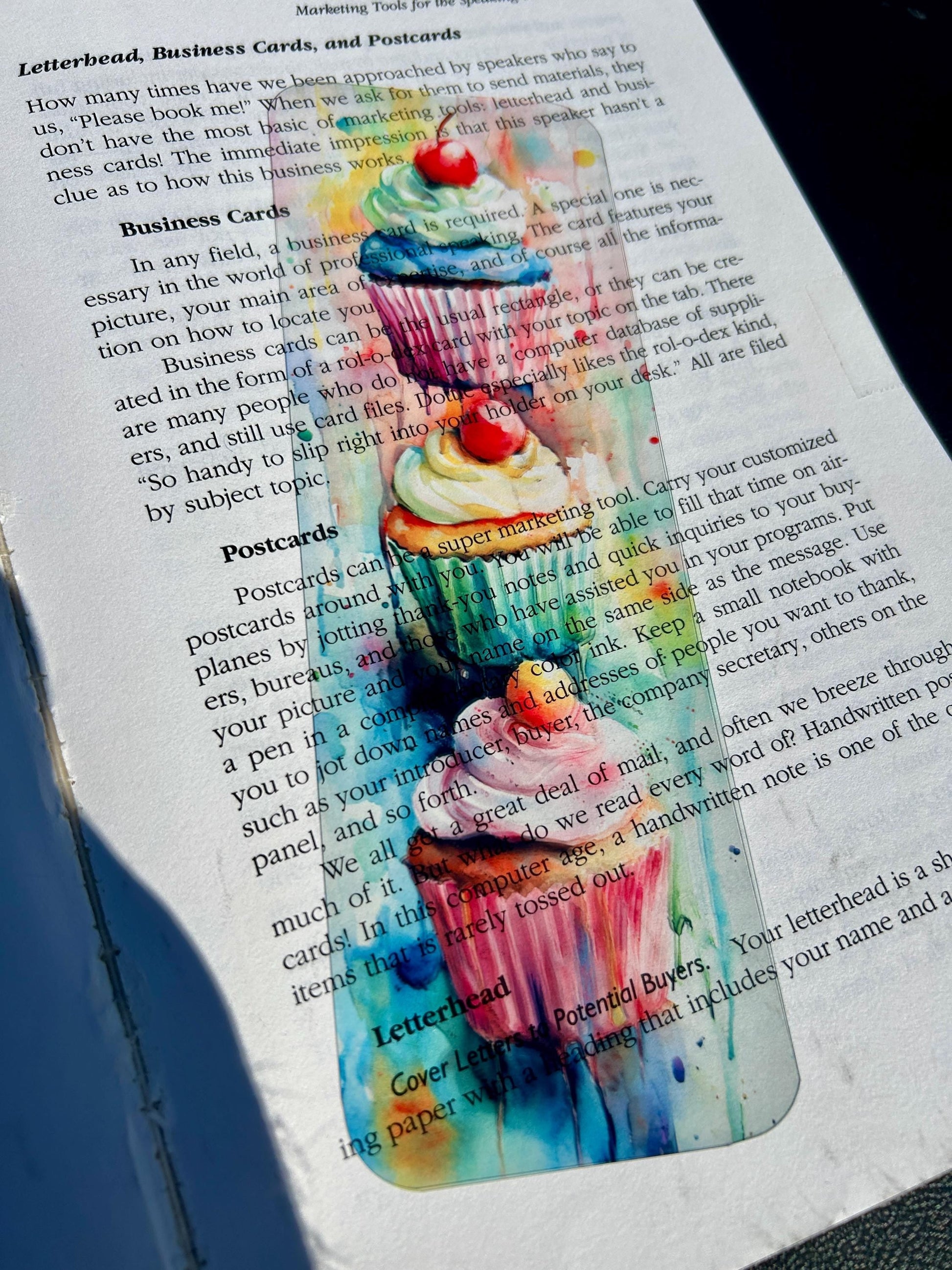 Floating Cupcakes Bookmark – Impressionist Pastel Drips Art, Whimsical Dessert Design for Sweet Readers & Cozy Bakers