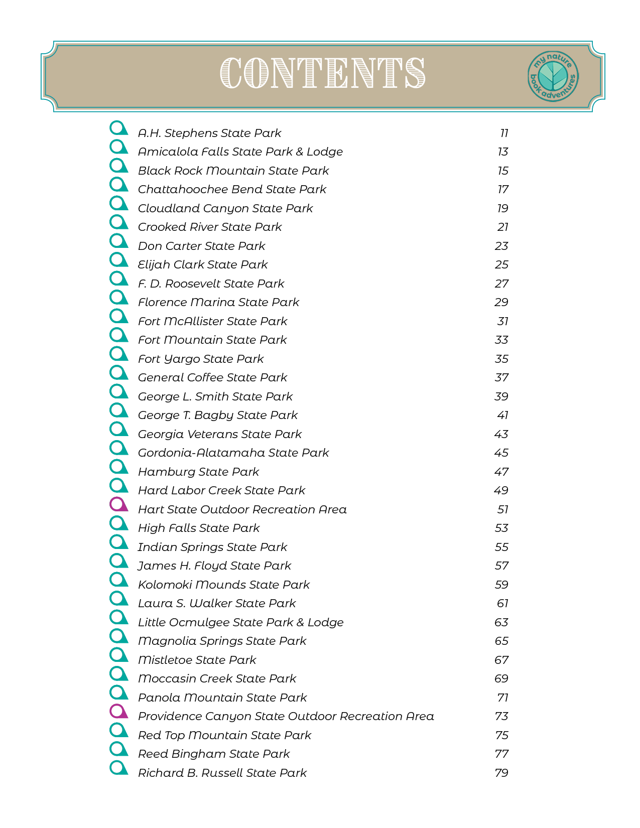 EACH ONE OF THE 61 GEORGIA PARKS HAS A DEDICATED 2-PAGE SPREAD.
