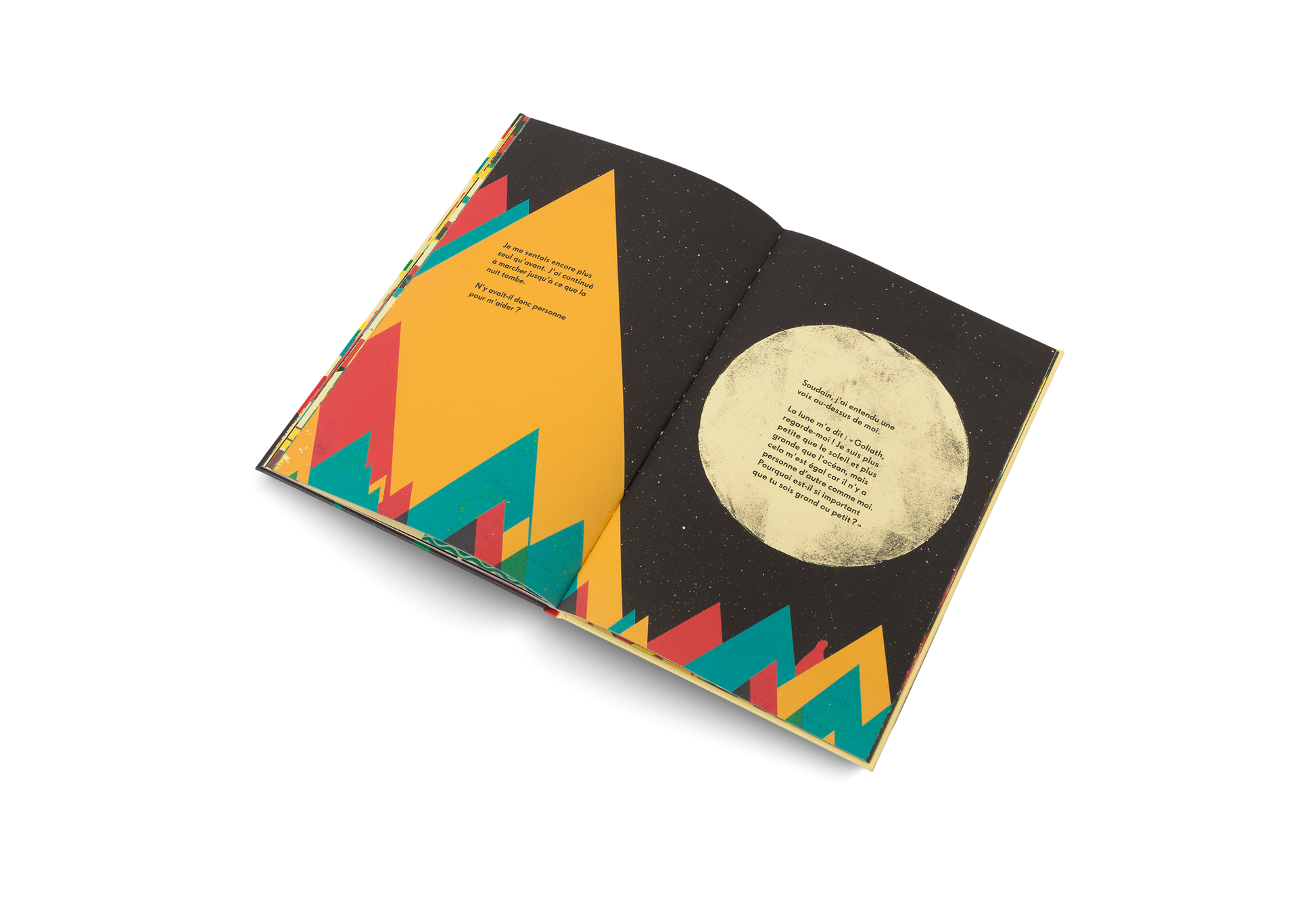Goliath est grand. Très grand. Bien plus grand que tous les enfants de son âge. Goliath se sent seul et isolé. Pour essayer de trouver sa place dans le monde, il quitte sa maison et son village. Dans ses aventures, il rencontre l'océan, il rencontre le soleil, et finalement la lune qui lui révèle que nous sommes tous différents et que c'est ce qui rend chacun de nous unique. Goliath est une histoire émouvante et poétique qui résonnera avec tout enfant se confrontant à l'altérité.