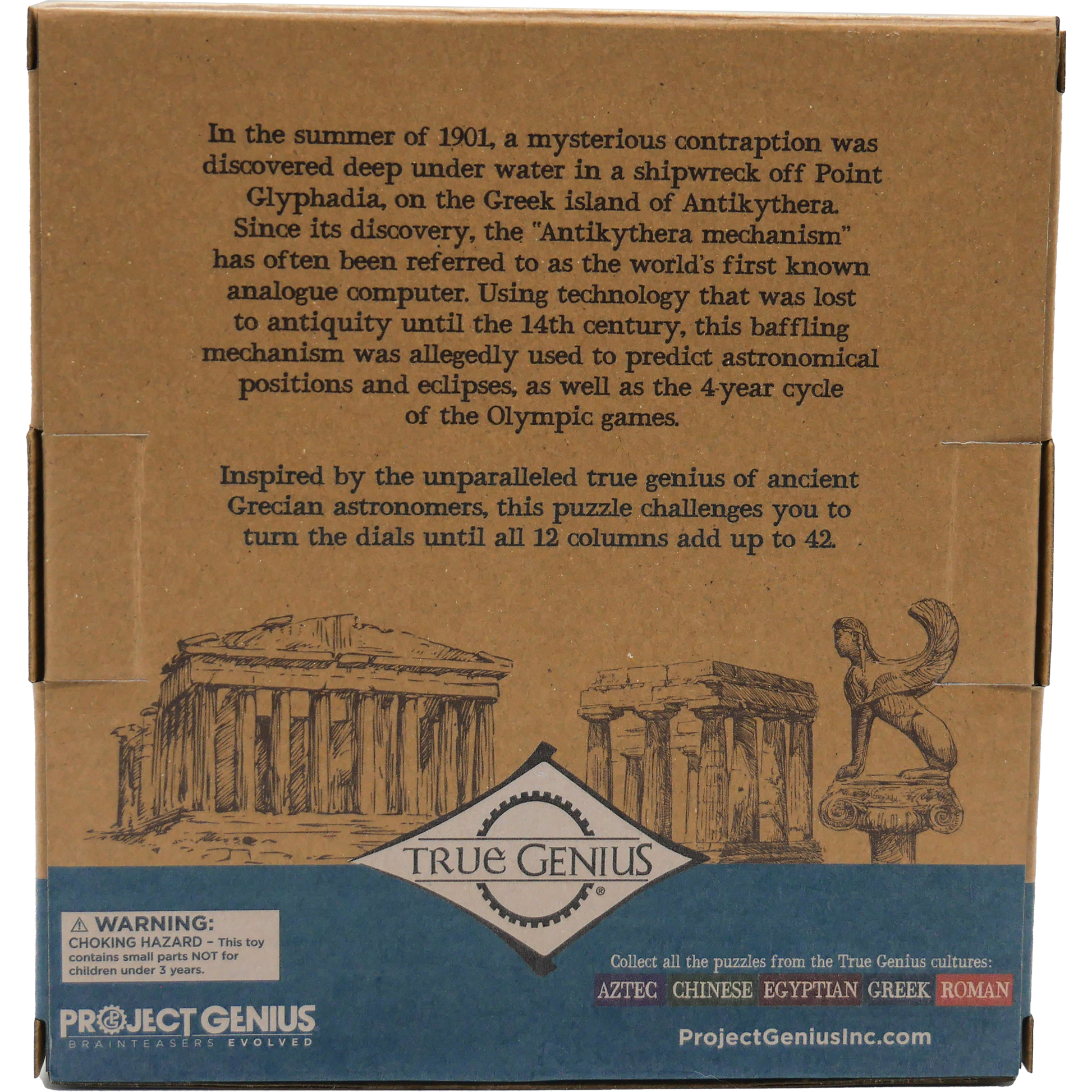 Inspired by the unparalleled true genius of ancient Grecian astronomers, this puzzle challenges you to turn the dials until all 12 columns add up to 42.
