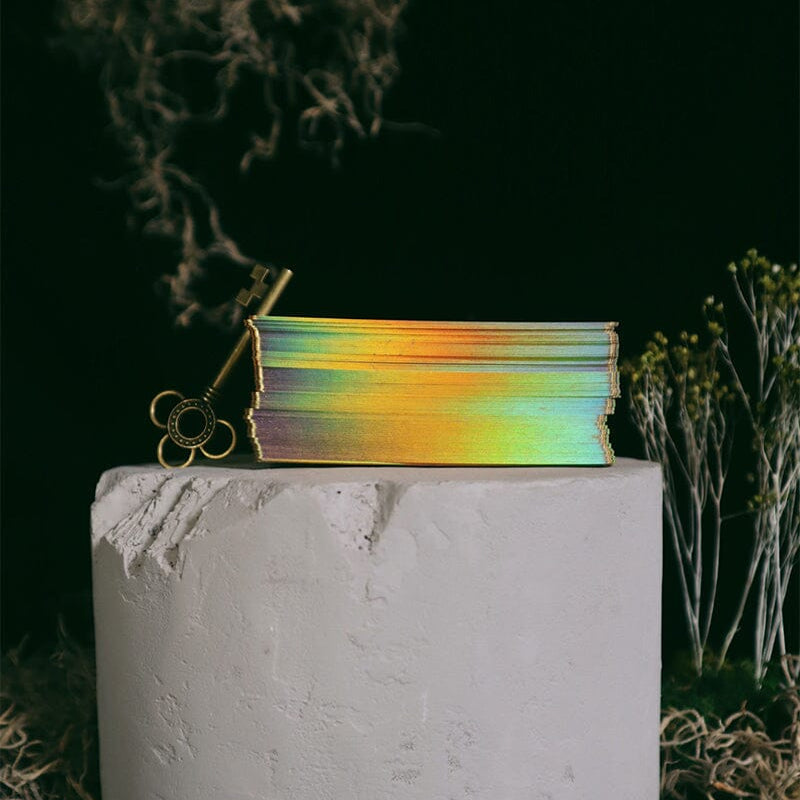 Includes 78 cards with prismatic gold gilded edges and a 120-page guidebook.