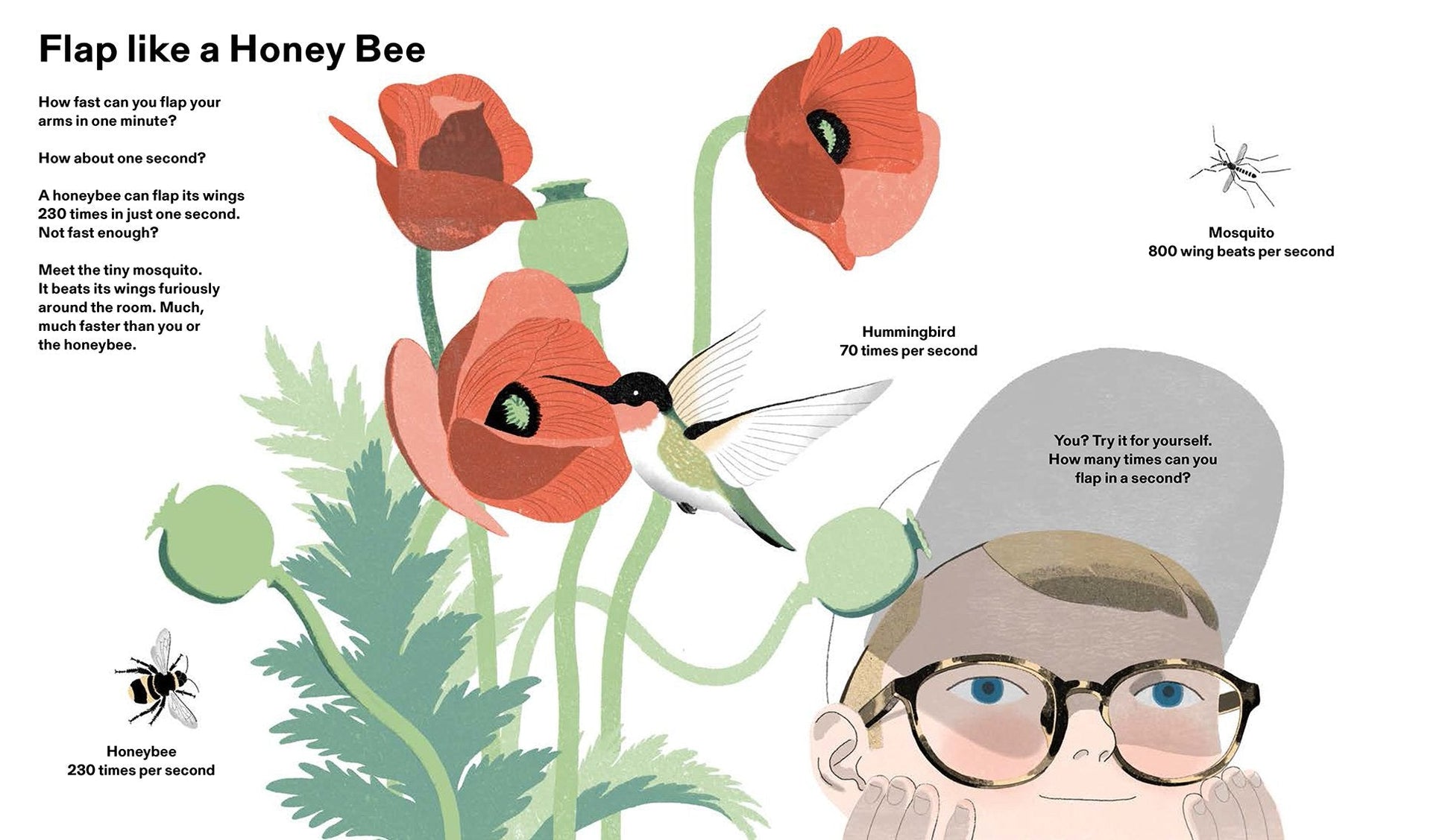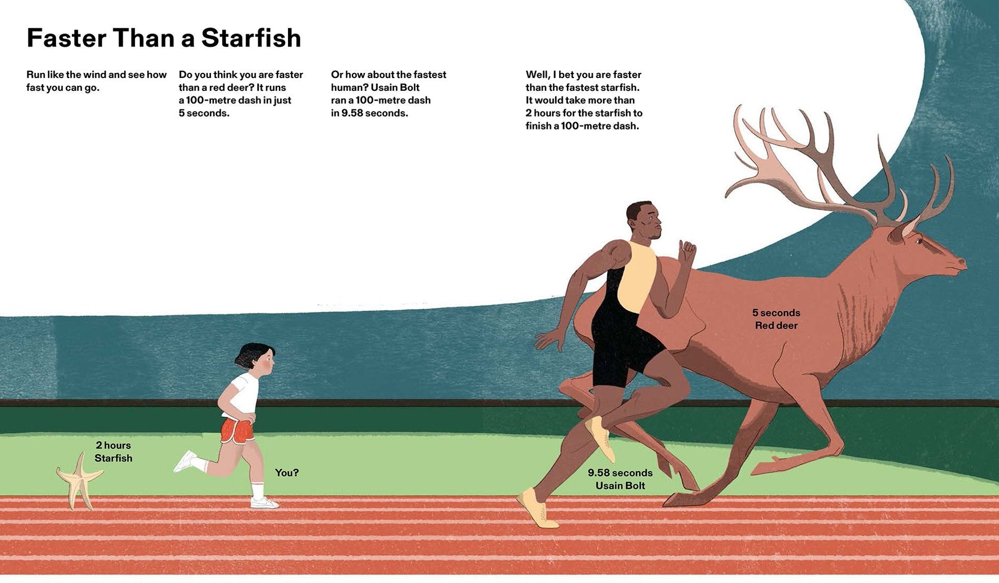 Each spread invites the child to imagine, test, interact and measure. Designed to be playful in its approach by using relatable comparisons that are brought into the child’s own daily sphere.