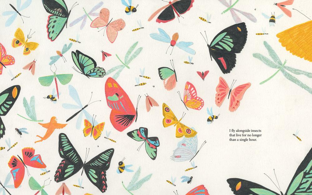 A pink-winged creature flies across each page; Life is present within all things. The pastel-colored protagonist befriends and animates every living being from bees that pollinate spring flowers to turtles that live under the sea to grandparents who impart wise words. Whether short or long, Life is always present.