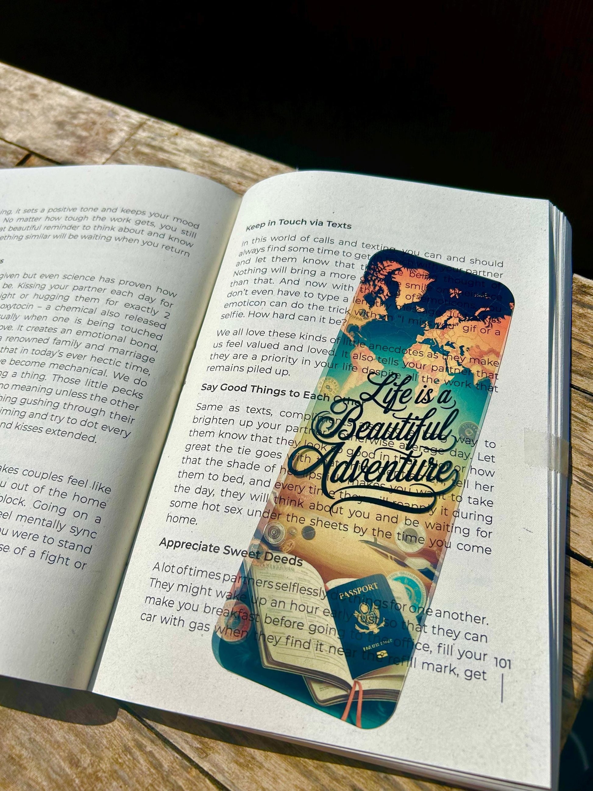 The Coolest Bookmarks You've Probably Ever Seen.... "Life Is A Beautiful Adventure" Bookmark – A charming and inspirational bookmark that reminds you to embrace every journey. Perfect for book lovers, travelers, and dreamers who believe in the magic of adventure!