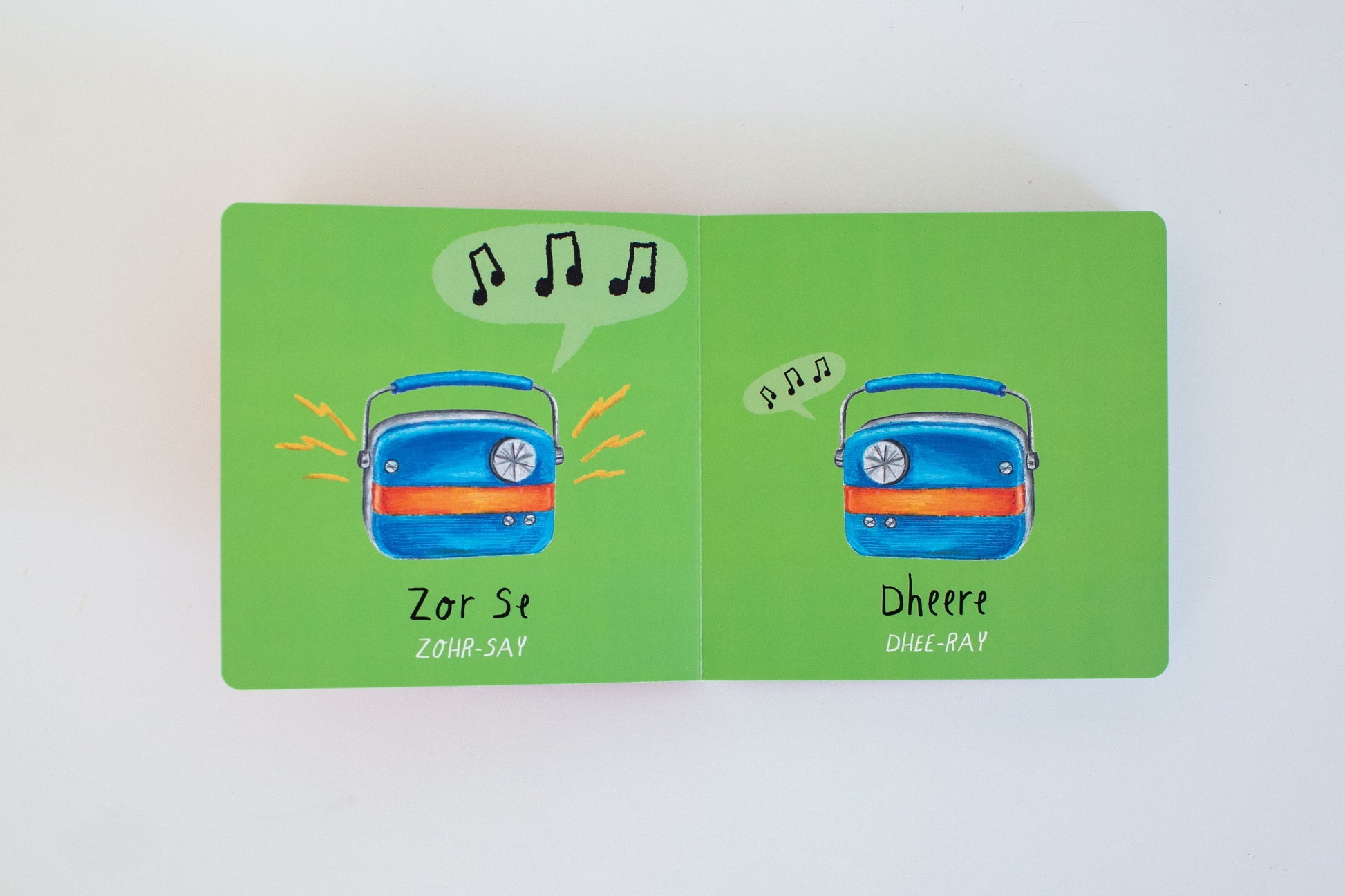 3. "My First Hindi Words! Opposites"-- so your kids can describe things in Hindi, like "cold/thanda" "hot/garam" "small/chota" and more!