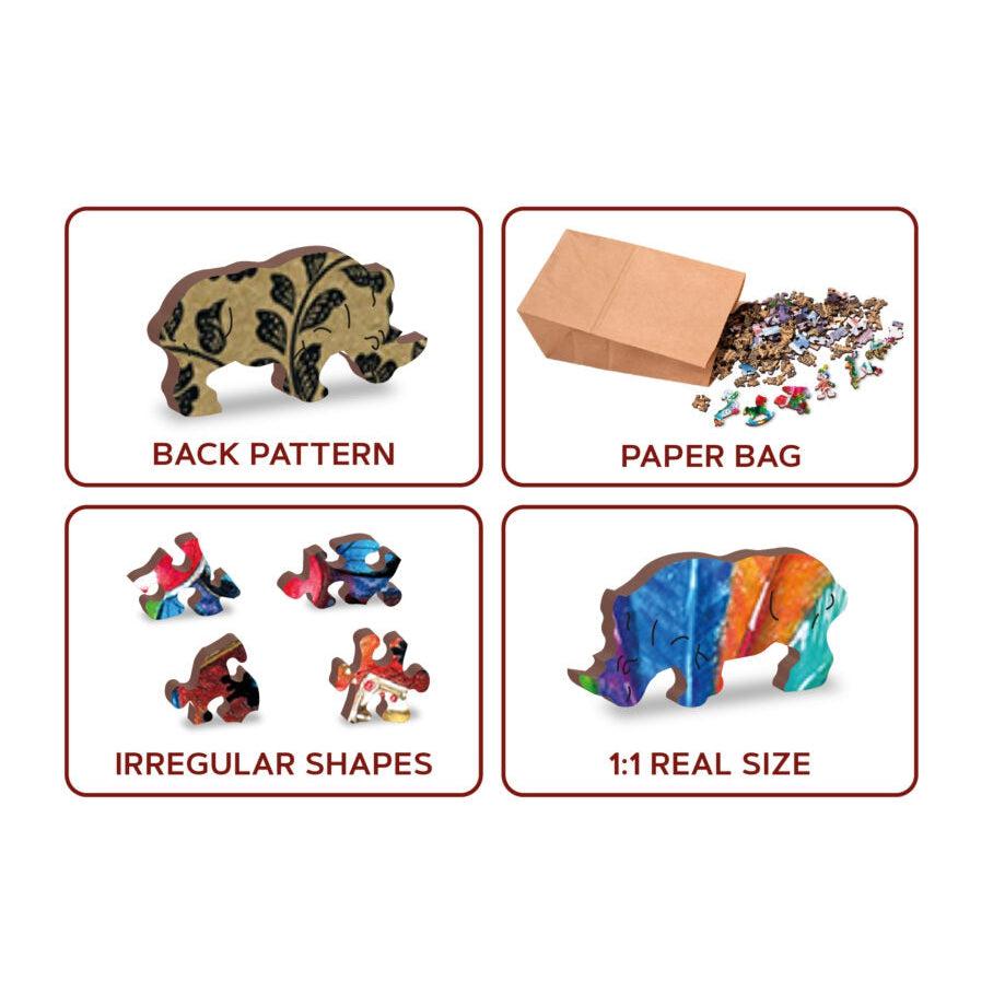 Each puzzle contains numerous unique shapes, characters, figures, and symbols that are cut seamlessly into the pattern. Think of these as mysterious little surprises each puzzle experience offers. These puzzles offer a high quality, rich beautiful image on the front and a detailed wallpaper style pattern on the back. Wooden City double-sided wooden puzzles offer a unique building experience that is sure to captivate puzzle enthusiasts of all ages.