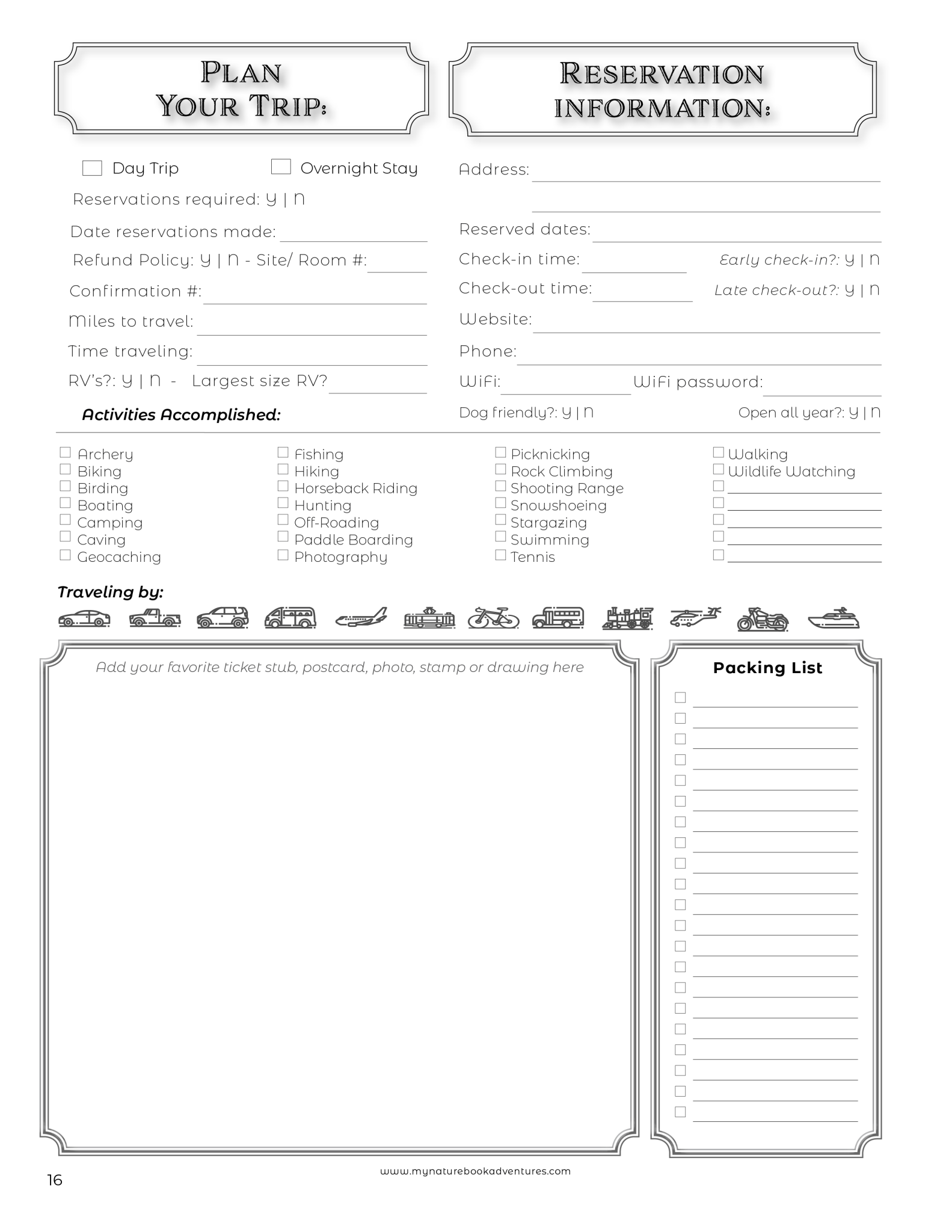 THE RIGHT SIDE INCLUDES PARK INFORMATION AND GIVES YOU A PLACE TO SHARE THE SPECIAL MOMENTS ABOUT YOUR JOURNEY