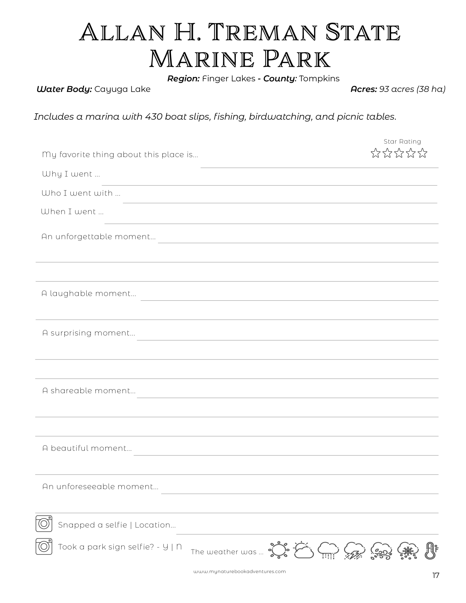 Do you dream of exploring all of the State Parks in New York? The New York State Parks Adventure Book helps you plan, discover, and collect memories from your adventures. With room to write down your must-see sights, plan your trip, and add photos, this adventure book is perfect for nature lovers of all ages. Plus, each page contains interesting facts about the park you’re exploring. Take on the adventure – and find new places to explore, new things to see, and moments to remember!