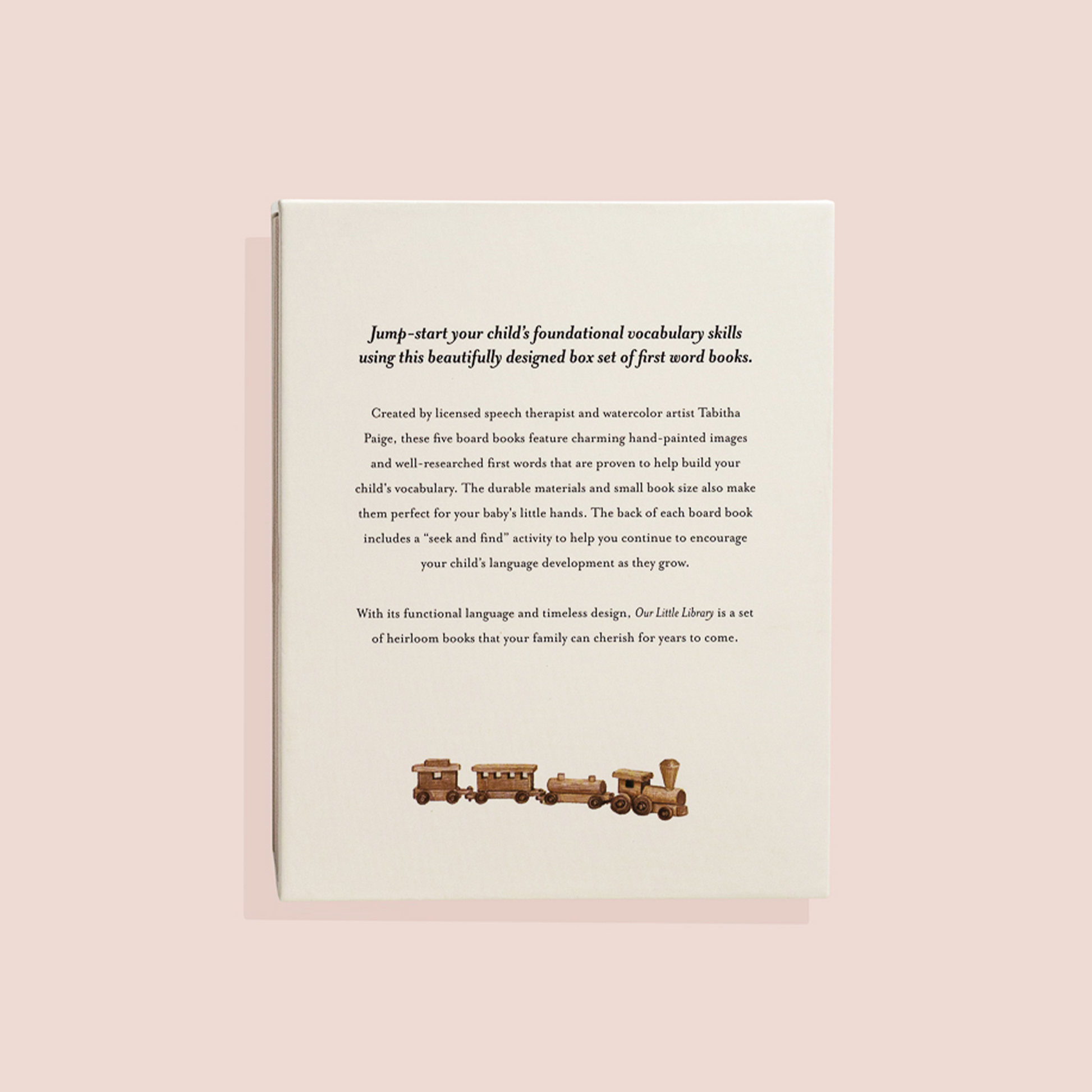 Created by speech therapist Tabitha Paige, CCC-SLP, author of the bestselling set Our Little Adventures, this new box set of first words books features functional language and a timeless design that will look great in any nursery or child’s room.