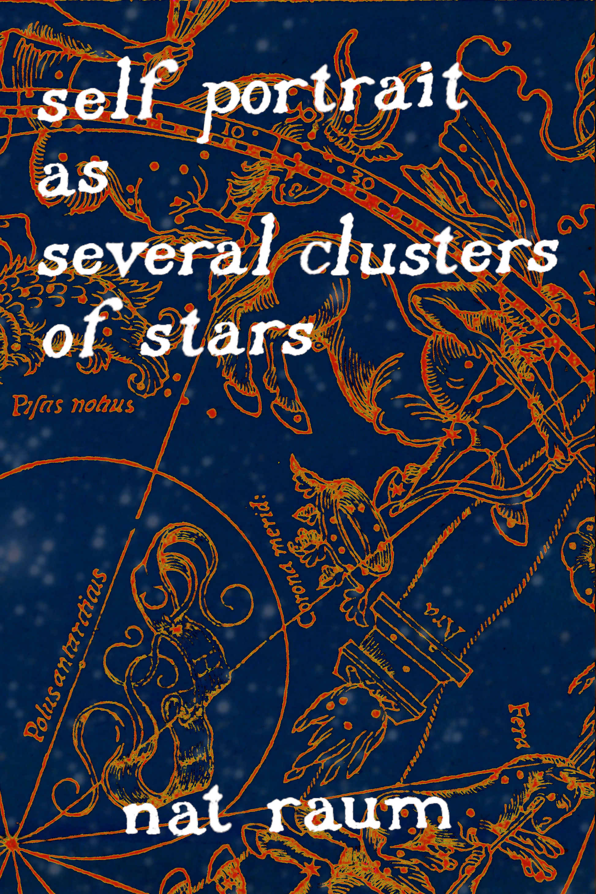 While they have established themself as a poet and visual artist, self portrait as several clusters of stars represents a new direction for nat raum: their first published collection of prose. Inspired by Gay and Mary Ruefle, raum blends humor and their signature navel-gazing memoir to create an intimate portrait of themself and their birth chart.
