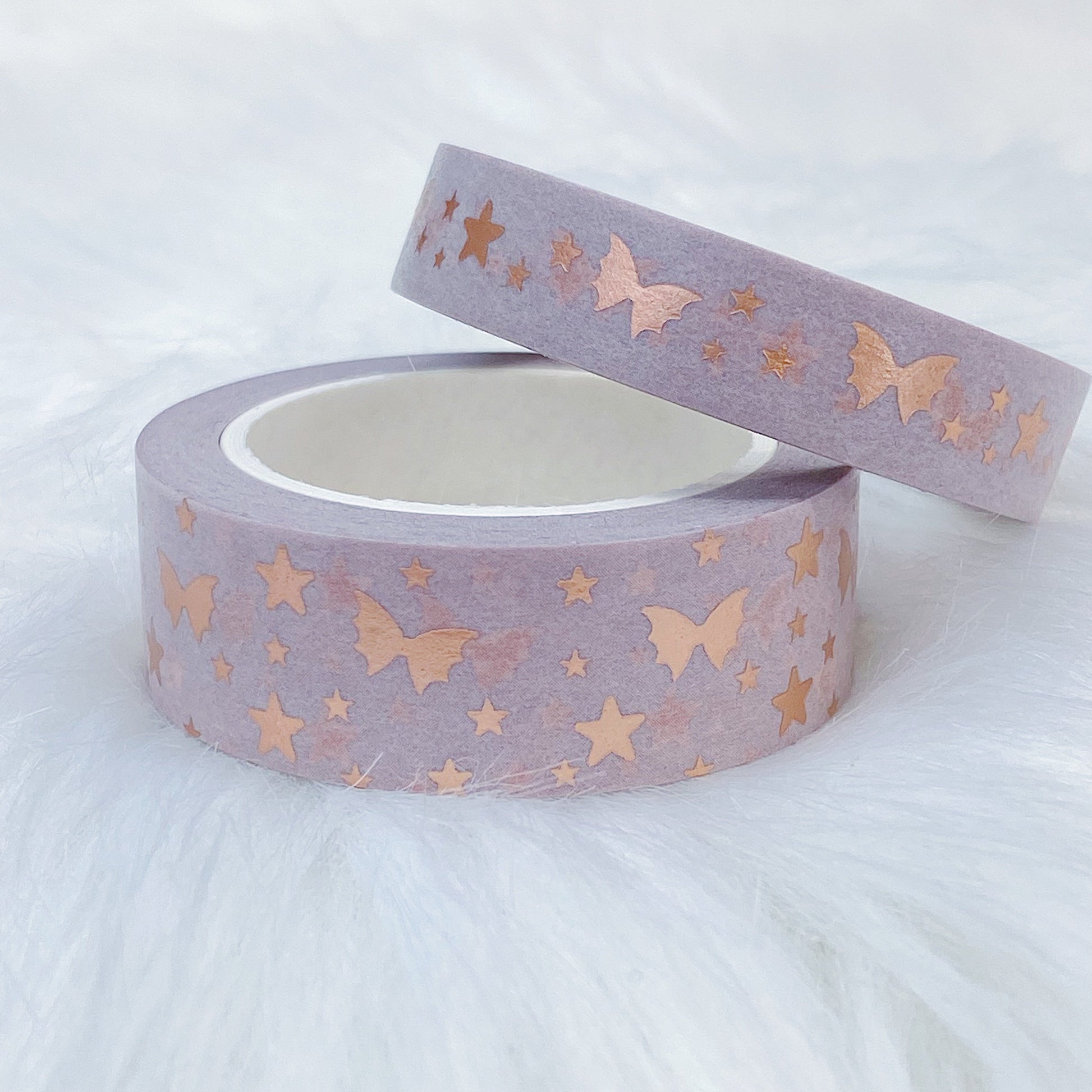 Send Me Nudes Taupe Bat Bow Magic Washi Tape Bundle | 15 + 10 MM | Rose Gold Foil