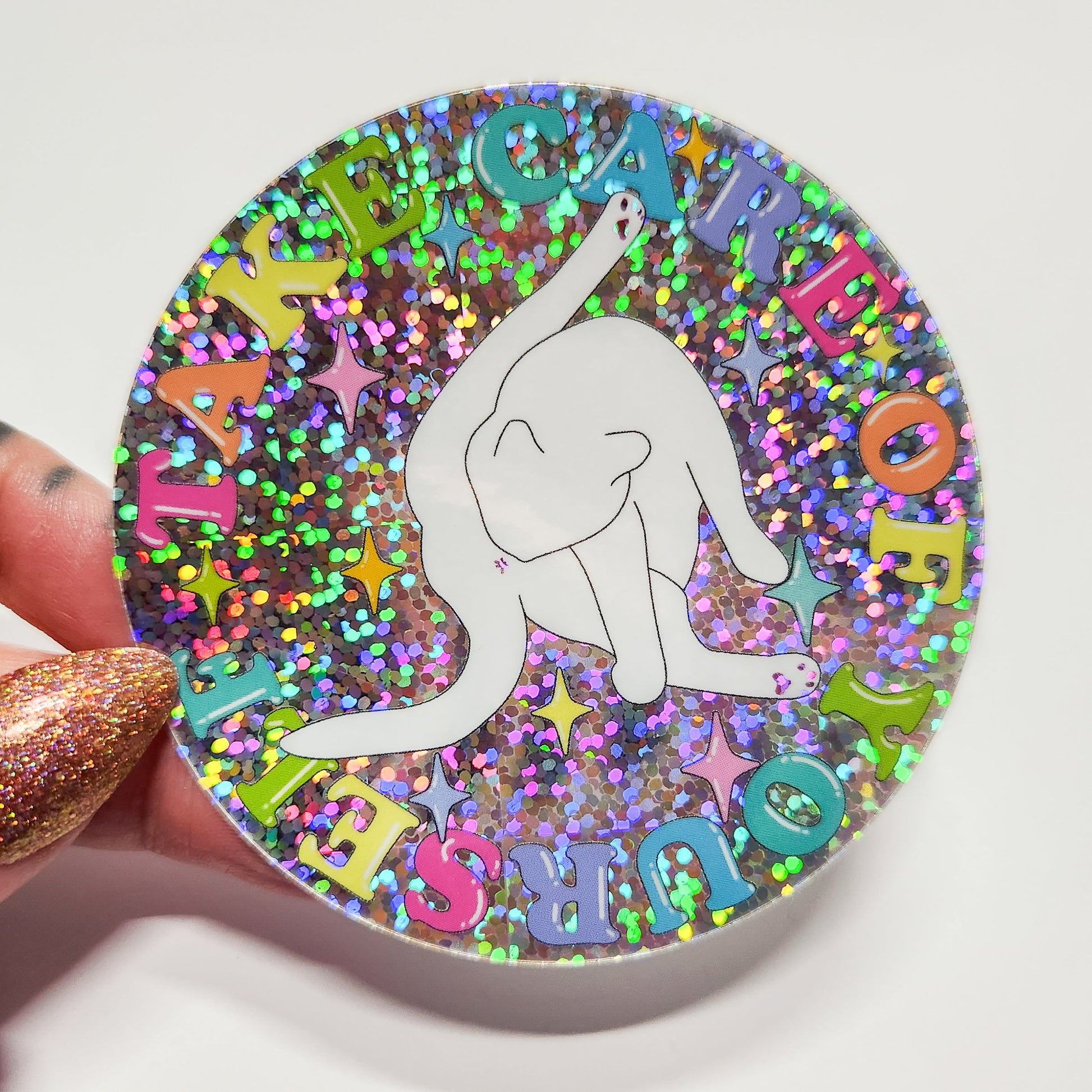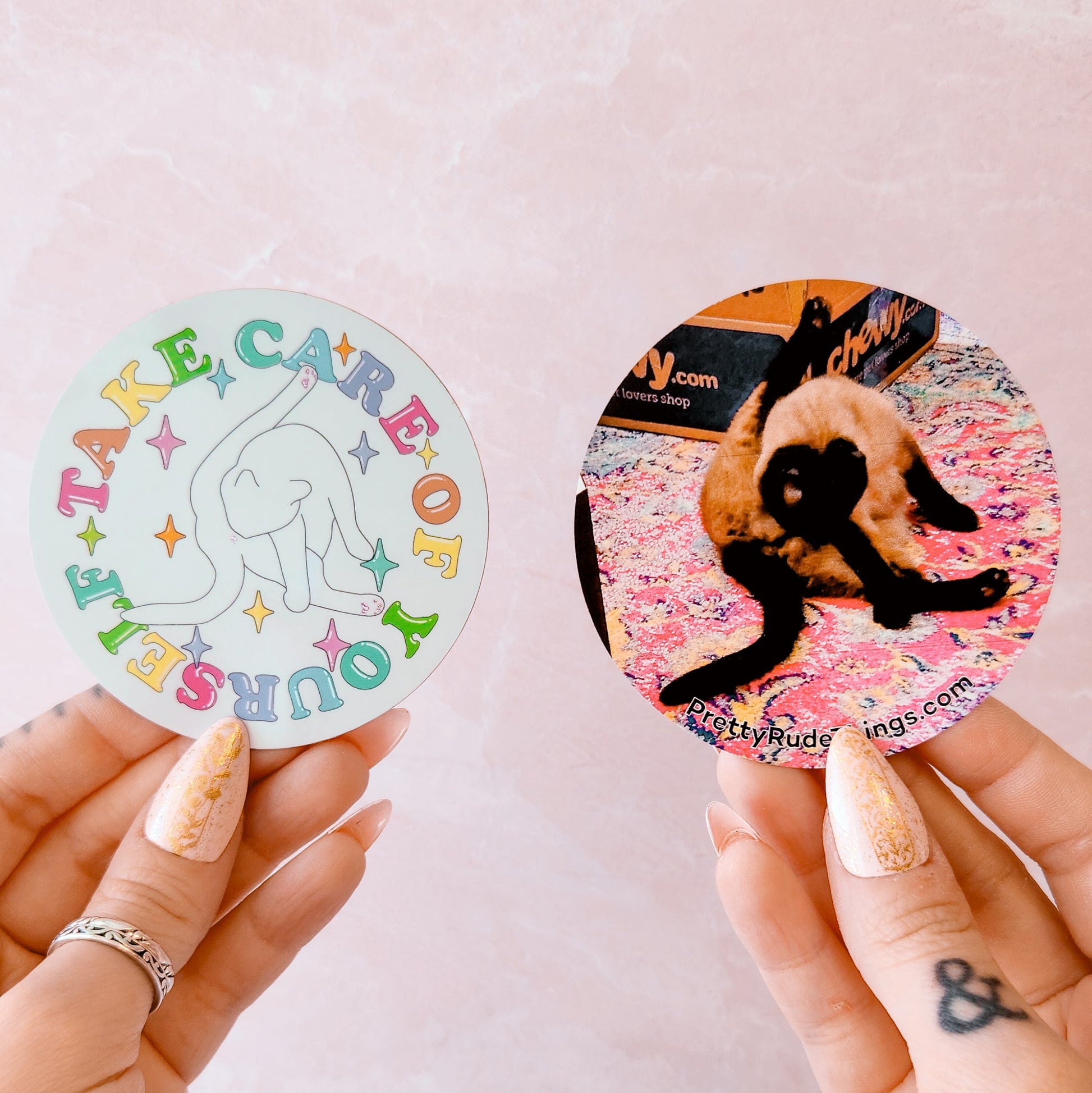 "Take Care of Yourself" Cat Butthole Sticker, 3 in.
