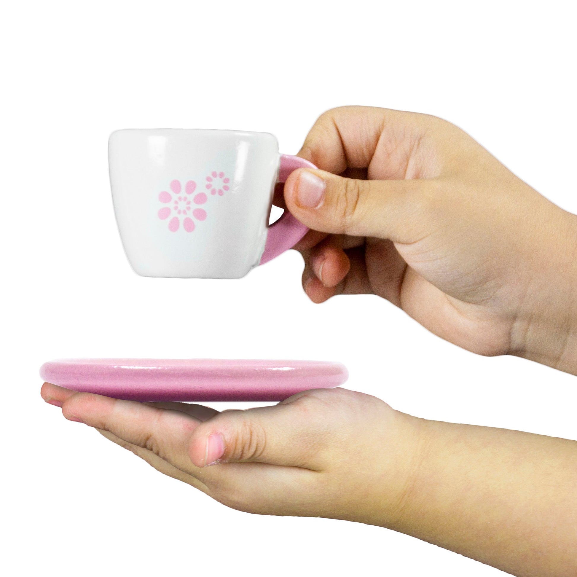 - A pair of teacups, saucers, and stirrers