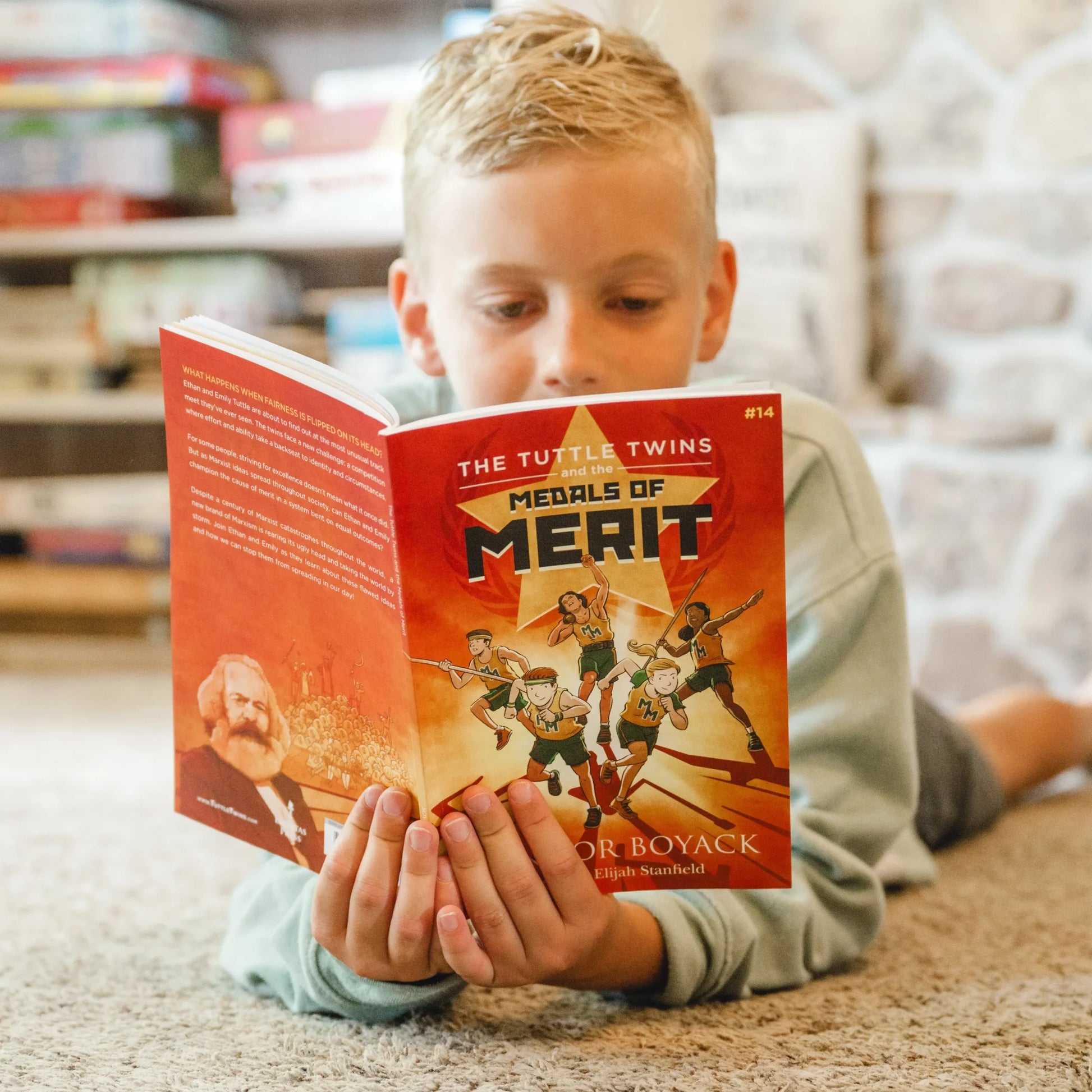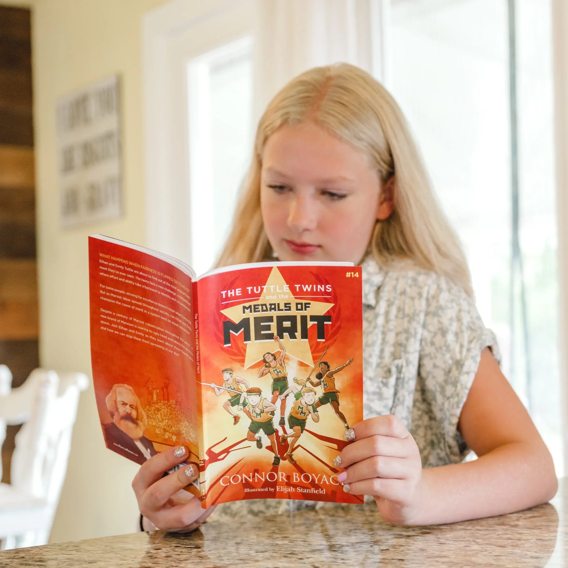 In "Tuttle Twins and the Medals of Merit," Ethan and Emily Tuttle face a competition where effort and ability are overshadowed by identity and circumstances, challenging their understanding of fairness and merit.