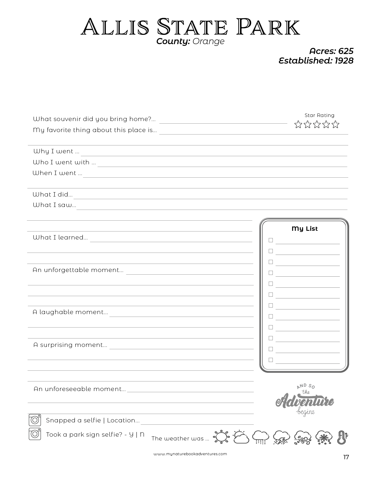 Also inside is an adventure checklist to make your adventures even more memorable.