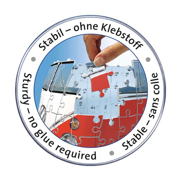 Surfs up! Grab you beach gear and pack up the camper van to catch those waves, once you piece together this model “VW Bus T1” puzzle — groovy, dude! Cruise in to 3-Dimensional Puzzling with Ravensburger! Follow the numbered pieces or challenge yourself and follow the image to put together a VW Campervan. This classic puzzle inspires nostalgia and new adventures! Ravensburger’s 3D puzzle pieces are sturdy and interlock perfectly to create unique 3-dimensional shapes that stay together with no glue required, the wheels spin at ease allowing this puzzle to become a model of this VW Classic vehicle. High quality 162 piece plastic jigsaw puzzle. 'The finished puzzle measures 11.75" X 5.5" X 6" Inches when complete. Suitable for ages 10 years and up. This puzzle uses unique plastic pieces, which slot together to build this sturdy and strong model. No glue required. Each puzzle piece is printed with a number on the reverse side, so you can either assemble the puzzle by eye, or just by following the numbers. This authentic camper van is a replica of the classic Volkswagen camper van and a product officially licensed by Volkswagen. Hang Loose.