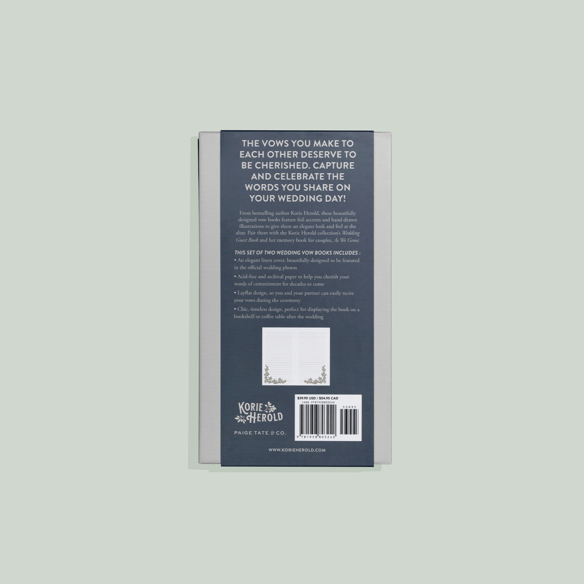 From bestselling author Korie Herold, these beautifully-designed vow books feature foil accents and handdrawn illustrations to give them an elegant look and feel at the altar. Pair them with the Korie Herold collection's Wedding Guest Book and her memory book for couples As We Grow.