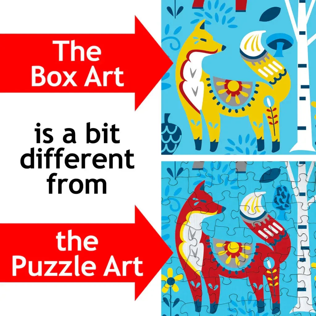Cindy Lindgren drew inspiration from this puzzle illustration from the Swedish dala horse. She wanted to put her own twist of decorative art on animals found here in the woods including bear, deer and foxes. You can find Cindy's like of illustrated products in gift shops throughout the upper Midwest.