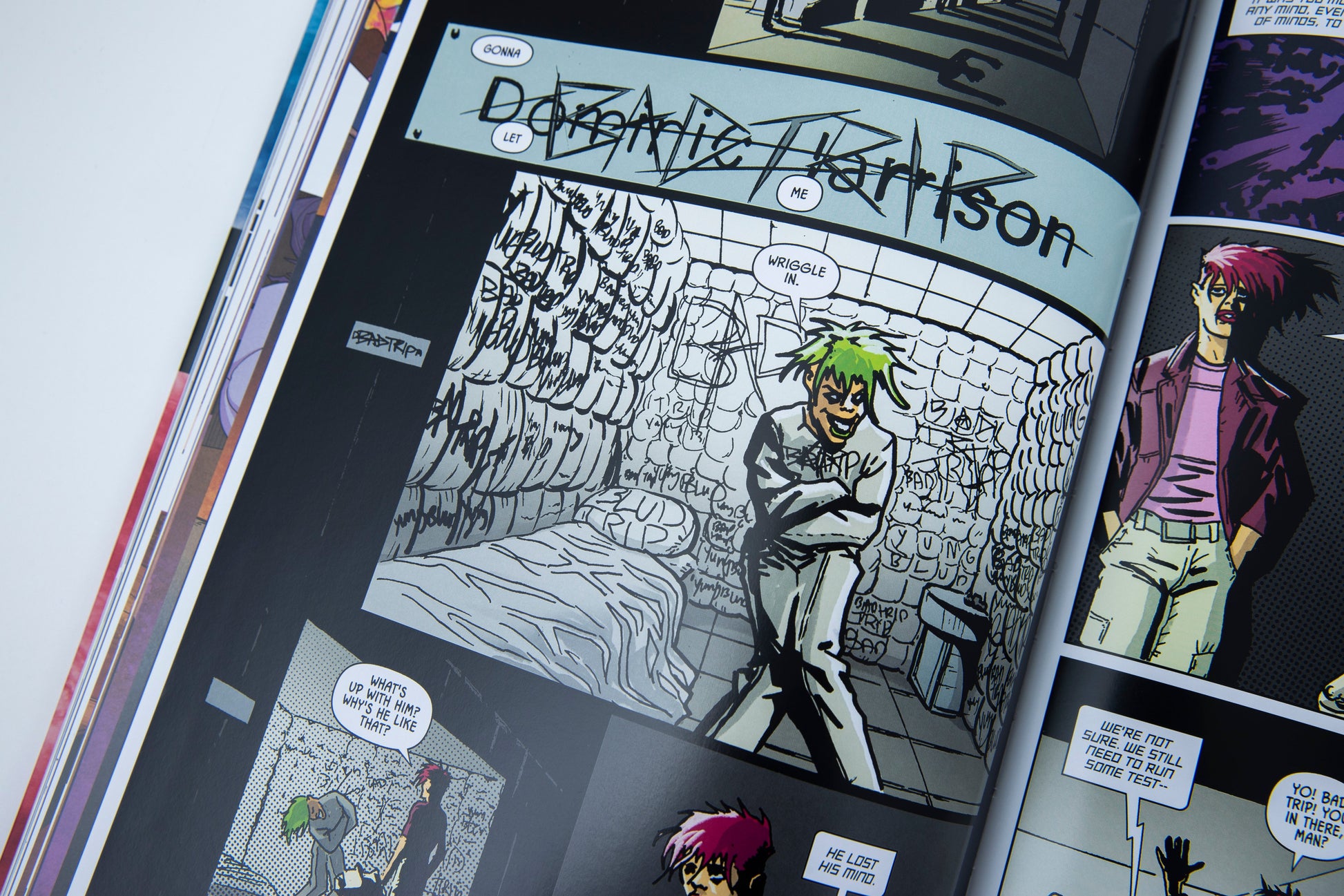 From the messed-up mind of music sensation YUNGBLUD comes the follow-up to 2019's smash hit graphic novel, "Twisted Tales!" Now eighteen, and having graduated from Blackheart's High School; YUNGBLUD, plus his super-powered friends Harmony, Scout, Zombie Joshua, Em, and Encore are now enrolled as students at Quarry Bank University. At first, it seems like university life is all drugs, sex and relationship drama. But when a new foe with a familiar face arrives from the Manga Dimension, the Ritalin Club find themselves caught in a trip that may cost them their very lives.